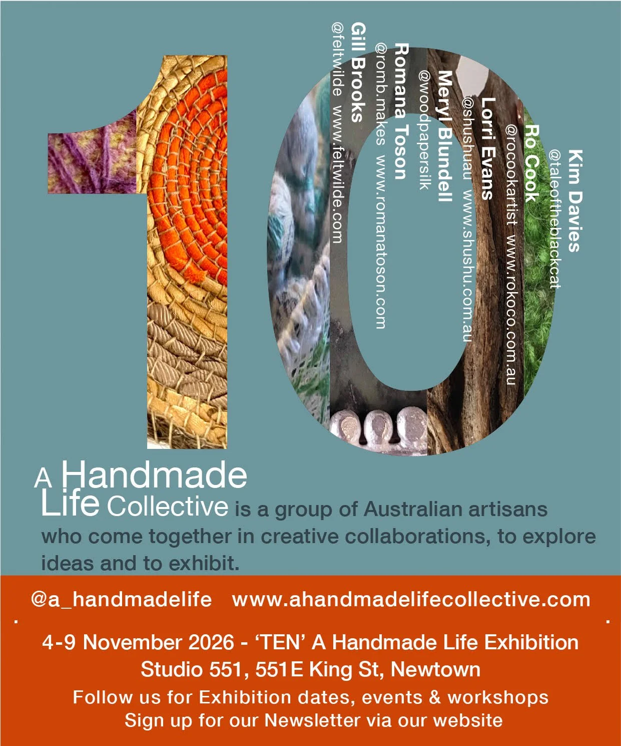 10 25 Mar Written By Ro Cook An exhibition celebrating 10 years of collaboration for A Handmade Life Collective @a_handmadelifetextilesfeltjewellrymakershandmade art and craft Ro Cook